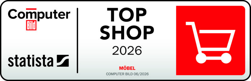 Unser Online-Shop, online-moebel-kaufen.de, wurde von dem Marktforschungsinstitut STATISTA und der Computerzeitschrift Computerbild als TOP SHOP 2026 ausgezeichnet. Diese Würdigung erhalten nur Online-Shops, die kundenfreundlich, sicher und übersichtlich sind. So erhältst du als Kunde einen Anhaltspunkt, welchem Online-Shop du vertrauen kannst.